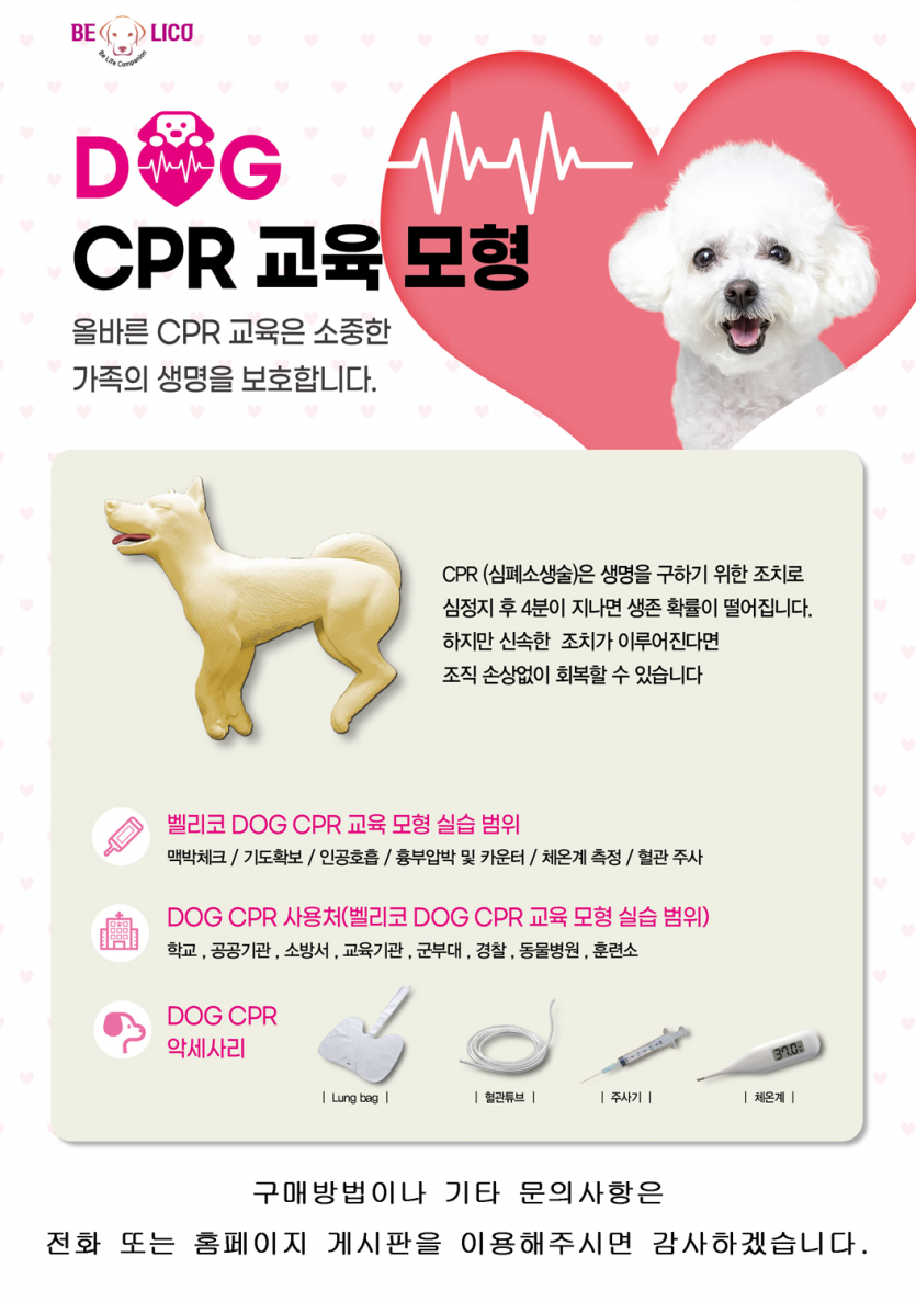 교육장비를 통하여 정확한 CPR을 익혀 소중한 반려견의 생명을 지켜주세요.